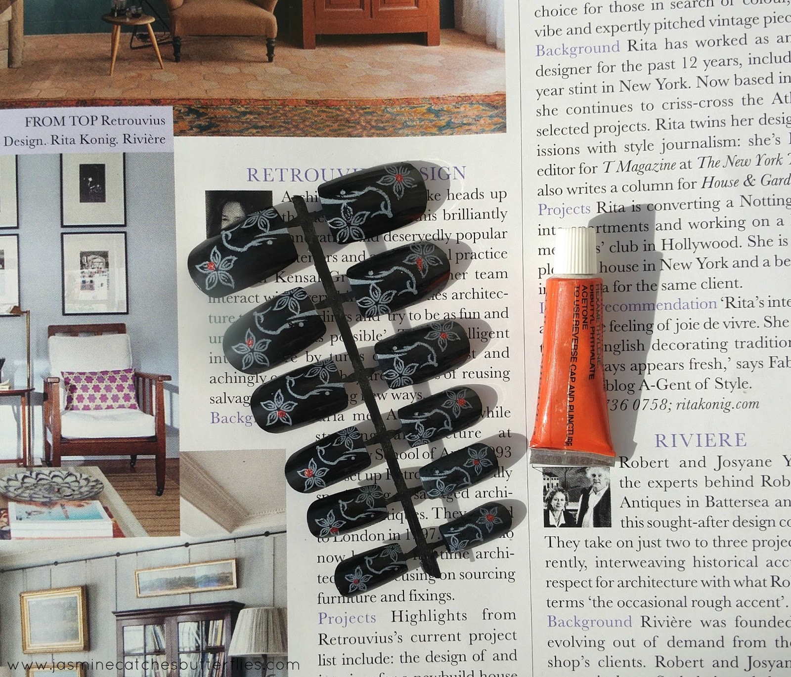 Sticker and decals, are my absolute favourites because they are the easiest to put on and you instantly get a cute design without fiddling around with dotting tools and what not. I have two, one is a sheet of monochrome flowers and butterflies while the other one is a sheet of lovely pink and green flowers.