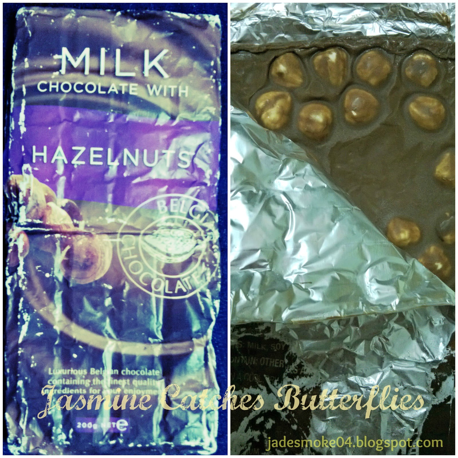 | Belgian Chocolate with Hazelnuts Don’t judge it by the tattered packaging. It melted in the heat. Belgian chocolate is my favourite chocolate and this one with hazelnuts was the best one I ever had! |