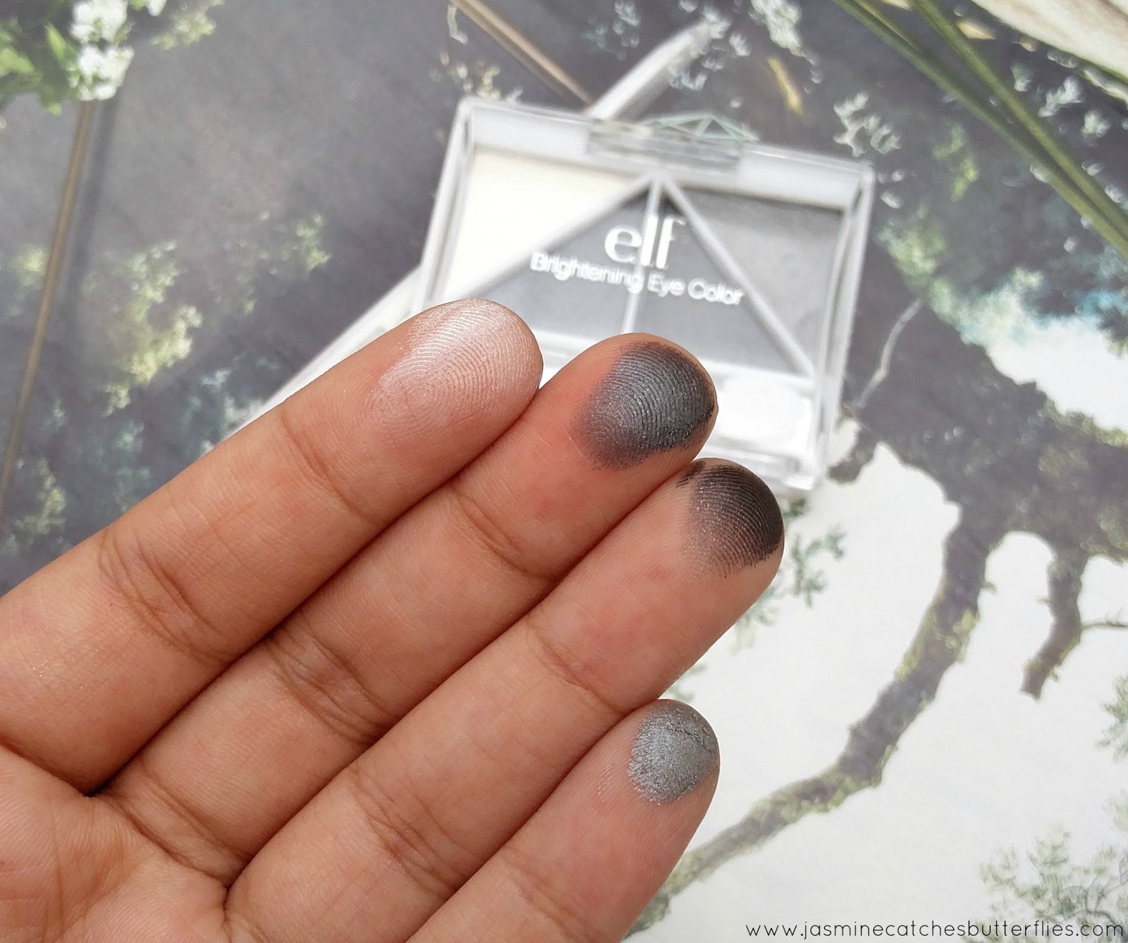 Eyeshadow quads are so handy, especially for travelling and touch-ups. ELF Brightening Eye Color comes in 3 shades and Drama has a mix of white, grey and black for achieving a cool-toned smokey eye look. The white shade seems matte while the rest are shimmery. The pigmentation varies a lot in this little palette as I find the greys buttery soft and pigmented while the black and white appear chalky.