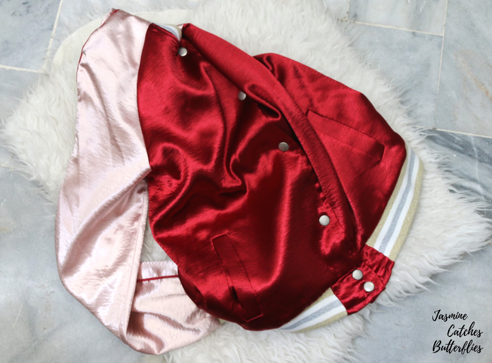 Even though the colour of this jacket is quite girly for a normal varsity jacket, I fell in love with the style and I do actually adore the combination of wine red and muted light pink. There are a lot of jacket options available on Rosegal, a lot of which do offer the similar satin look, including bomber jackets, but the reason I chose this is because it is plain.