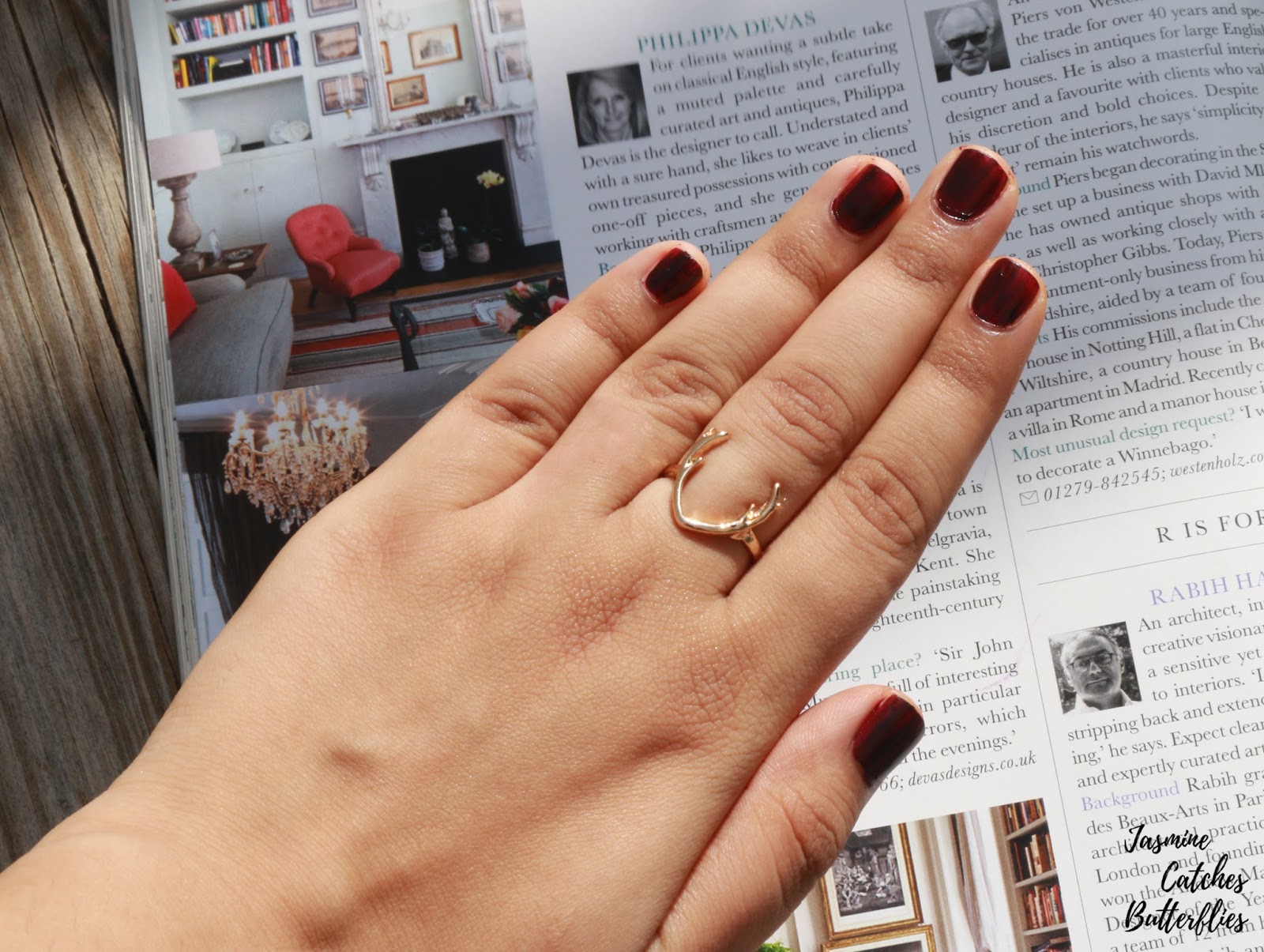 Dainty rings are perfect for everyday wear and they go well with daytime formals too. For some reason, I have always been drawn to antlers so when I saw this ring, I knew I had to get it. Just like the other ones, this was also available in silver but I went for gold because that is my go-to preference.