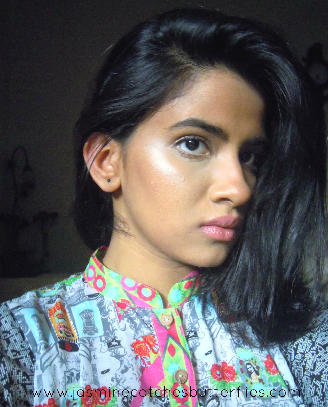 Now it’s yours truly’s turn! I have a medium, typical South Asian complexion, and for this look my main focus was to enhance the skin rather than loading on too much colour. So, I went with something subtle yet glowy to feel summer appropriate. I did somewhat incorporate the strobing technique but still managed to keep a light hand on the highlighter and skipped blusher and contouring for bronzing. For my eyes, I went with a single shadow, softly lined the outer half of my upper lids and just did one coat of mascara, enough to make my naturally droopy eyes seem awake while still maintaining their dreaminess. To tie the look, I used mauve pink on my lips for the “my lips but better” effect and just topped it off with a brown lipgloss to go with the glow.