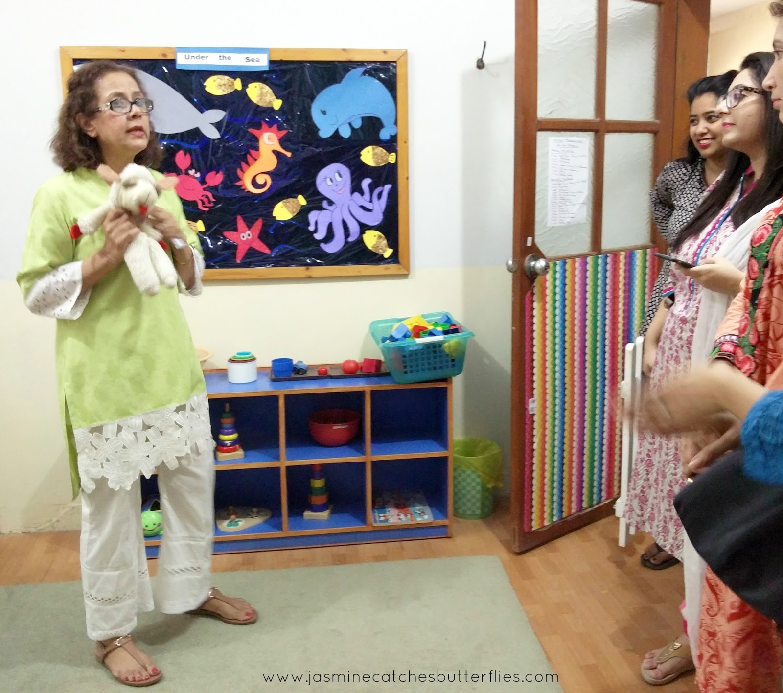 Now, we were supposed to be there for watching a play prepared by little performers but instead ended up getting a tour of the school since we couldn’t make it in time. So we were shown around by Ms. Imrana Zuhair, who is one of the teachers there and she’s so gentle and polite in her ways like a preschool teacher should be that she reminded me of my own favourite teachers from kindergarten. Ms. Imrana, along with Ms. Yasmin Zaman, who is equally soft-spoken, and Ms. Manizeh Qayoom is former Karachi Grammar School kindergarten teacher, with over twenty years of experience and foreign training.