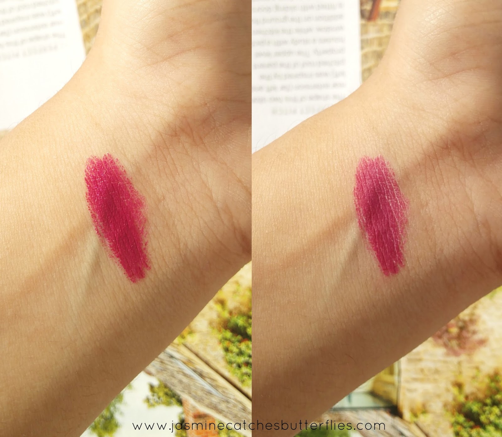 The reason why this hack stood out to me all of a sudden is because the two lipsticks I have mentioned are gorgeous but have cons that can be bothersome other than the fact that I prefer matte finish on myself. Uptown Mauve was first and is the only purple lipstick I own but it fades to looking like bright pink and Boysenberry is a badass shade but it is so creamy that it goes everywhere. So dabbing on powder locks in the colour for hours and doesn’t feel uncomfortable like some matte lipsticks do because underneath the powder my lips are already moisturised.