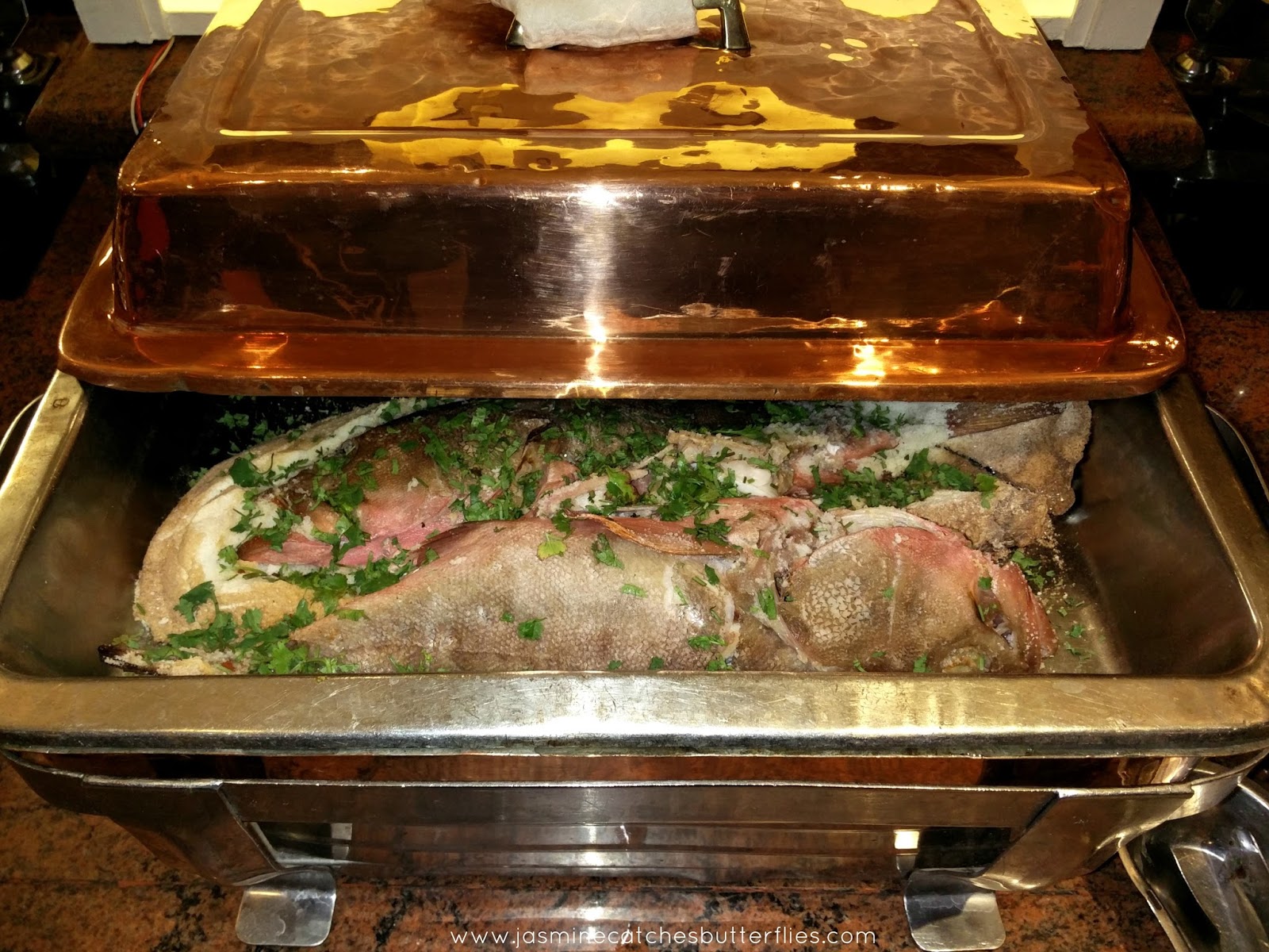 Another mezze item was Cabbage Dolmas, and while I have had Grape Dolmas in Oman before, this was something different for me too. Dolmas are basically made by rolling fillings into leaves or a piece of vegetable. So the cabbage dolma had rice and some meat in it. Now I say ‘some’ meat because the tent card read ‘Chicken Dolmas’ but the list of the menu that I have reads ‘Cabbage, Prawn and Rice Dolmas’ and since the dolma was quite big, I had only taken a small piece of it which just happened to have rice. I do think some of the place cards for food read differently than what was present as I felt the same about the baked red snapper card which I think was baked kingfish. They have both of them on this menu by the way so they might have gotten it mixed up.